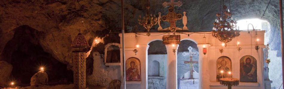 Northeast of Olympos, on the edge of Vroukounta cape, you will find a large natural cave which has been inhabited since the Minoan- Mycenaean era. You can see the ruins and the carved tombstones of the ancient city if you enter the bay by boat. At the tip of the peninsula there is a cave in the memory of St. John Vroukounta. The largest and most important festival of Karpathos takes place here on August 28-29.